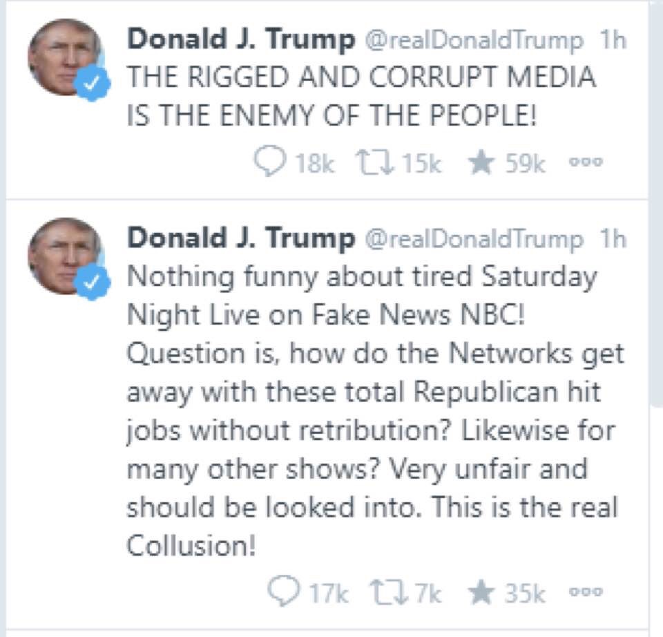 Our so called President tweeted that the New York Times is the true “ENEMY OF THE PEOPLE!”