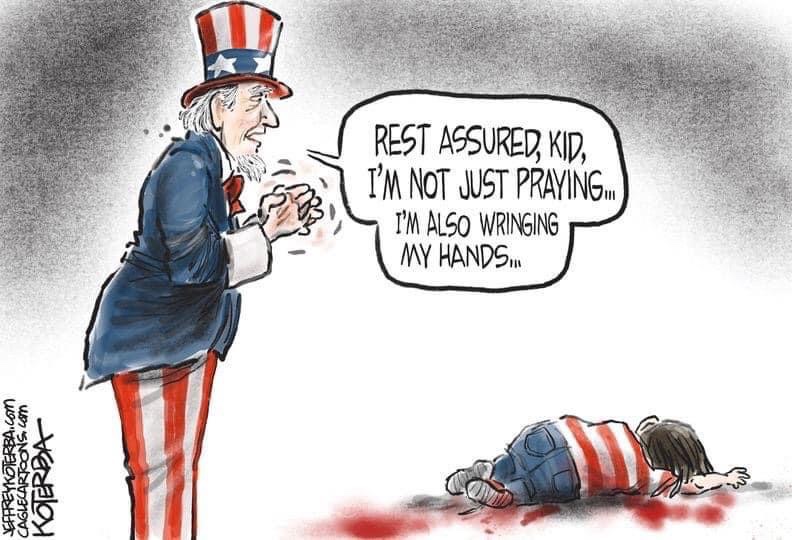 It’s been nearly 10 years since Newtown. That the AR-15, very instruments of terror used then remains available and accessible to those who pose an obvious risk to the health and safety of our children, it is beyond comprehension. Where is the justice in this country? The means by which “we, the people” get to hold politicians to account for the blood of the innocents that stains their money lined silk pockets. What must be done to charge those NRA controlled representatives who refuse their civic duty as accessories to murder? How do we demand that those who intentionally obstruct efforts to protect the future of this nation are charged for their negligent indifference?